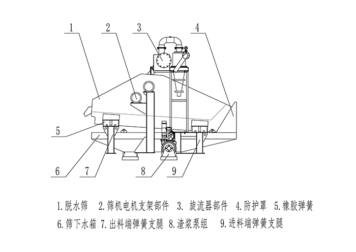 該設(shè)備一般直接安裝于洗砂機后部,設(shè)備上的脫水篩對洗砂機的成品物料進行再一步脫水,設(shè)備上的回收系統(tǒng)則對洗砂機排出的廢料進行再回收,充分解決了洗砂機的弊端(如:成品含水量大、含泥量大、粉塵多、雜質(zhì)難以清除等),大大提高了成品的品質(zhì)。旋流器將洗砂廢水中的細砂與水分離后,將濃度被提升至60-70%的細砂排入脫水篩表面進行脫水,實現(xiàn)細砂的脫水回收。